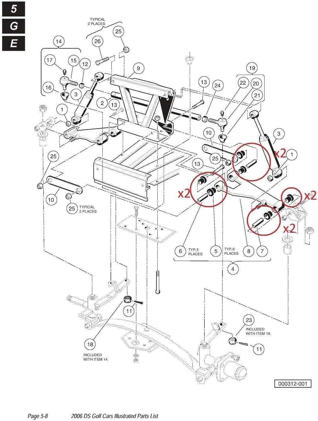 Buy Bushing Kits For Club Car Ds Front Lower Spring Front Upper A Arm Suspension Online In Indonesia B08xm6qplr