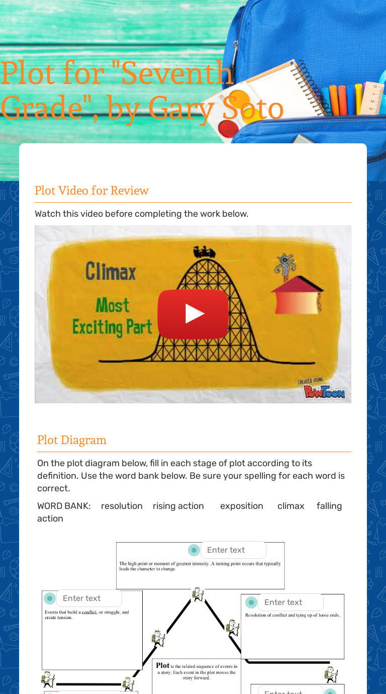 The Plot Diagram song will help you increase your storytelling power and learn the elements of plot. A 'plot mountain' diagram is often used when learning st...