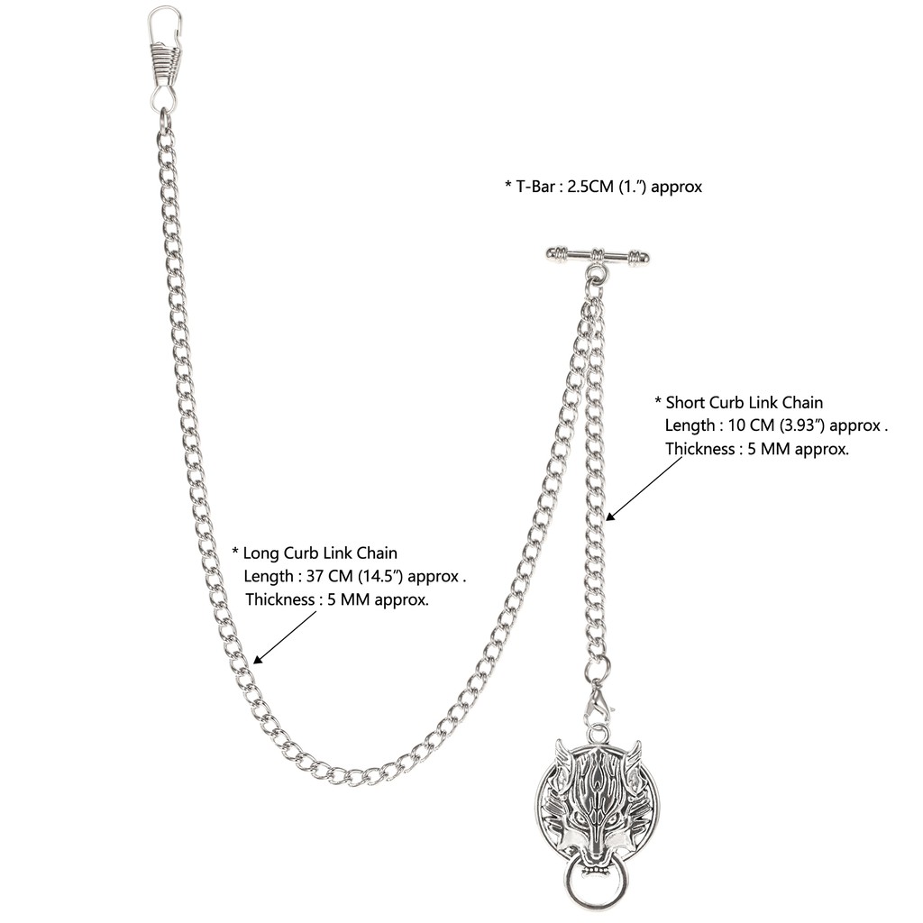 Treeweto Men S Albert Chain Pocket Watch Curb Link Key Chain 2 Hooks With Antique Wolf Pendant Design Charm Fob T Bar Shopee Malaysia