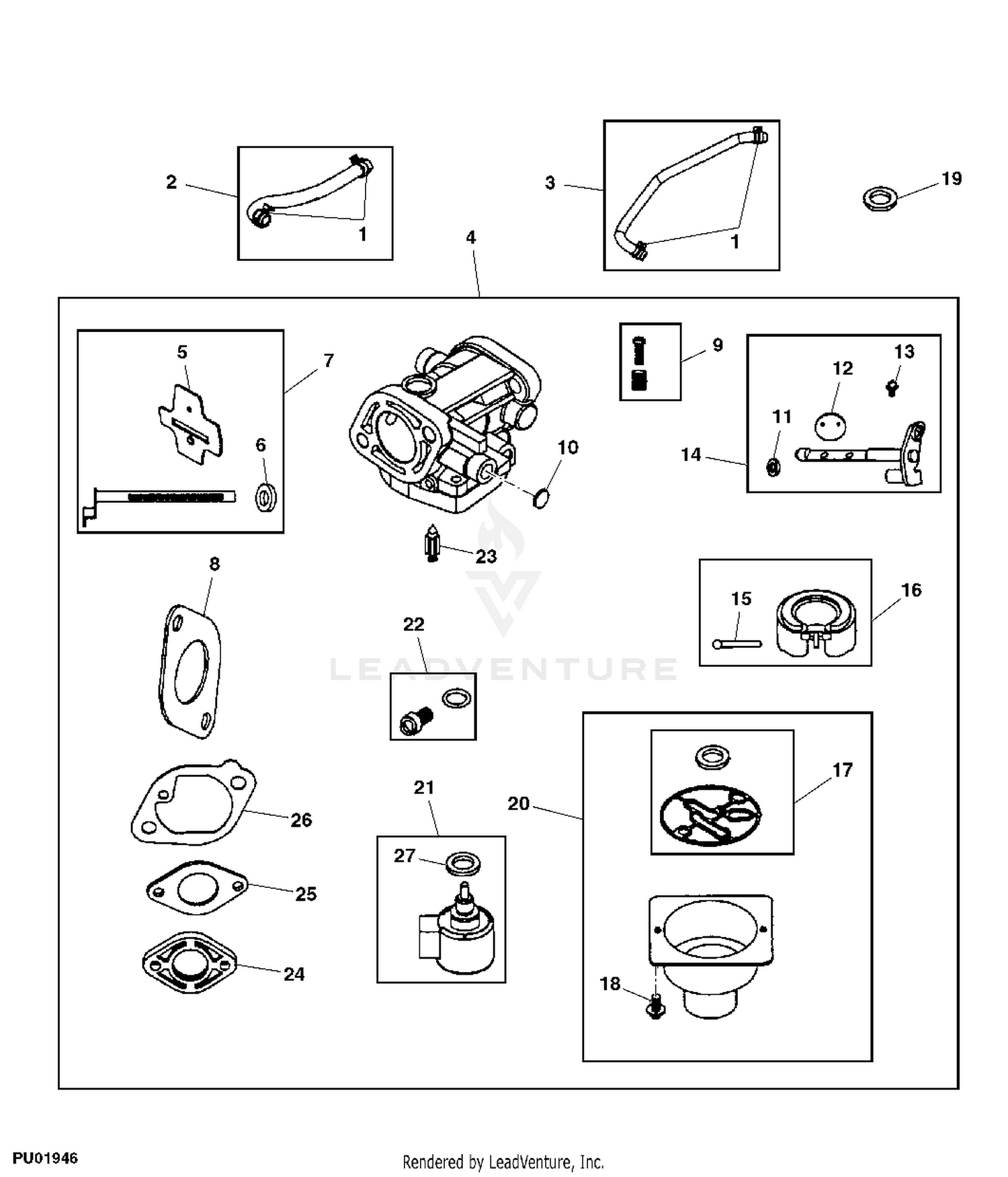 John Deere PARTS LOOKUP John Deere Parts Diagrams, John Deere L111 Lawn Tractor (With 42-IN Mower Deck) Material Collection System -PC9458 Air Filter & Fuel Pump ENGINE MARKED 406577-0139-E1: FUEL AND AIR