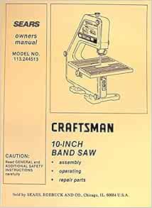 Craftsman 10-inch Table Saw Owner Manual. Bandsaw Parts List and manual for Craftsman 10 Direct Drive. Download the manual for model Craftsman 113243310 band saw. Sears Parts Direct has parts, manuals part diagrams for all types of repair projects Old Sears Model 113.248322 12"...