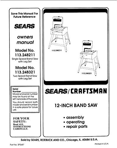 Find many great new & used options and get the best deals for Craftsman 103.0103 12 Inch Band Saw Owner's товар 3 CRAFTSMAN 113.244513 10-Inch Band Saw Owner's Instructions and Parts Manual 1022 3 -CRAFTSMAN No assembly diagram, but maybe not part of original manual.