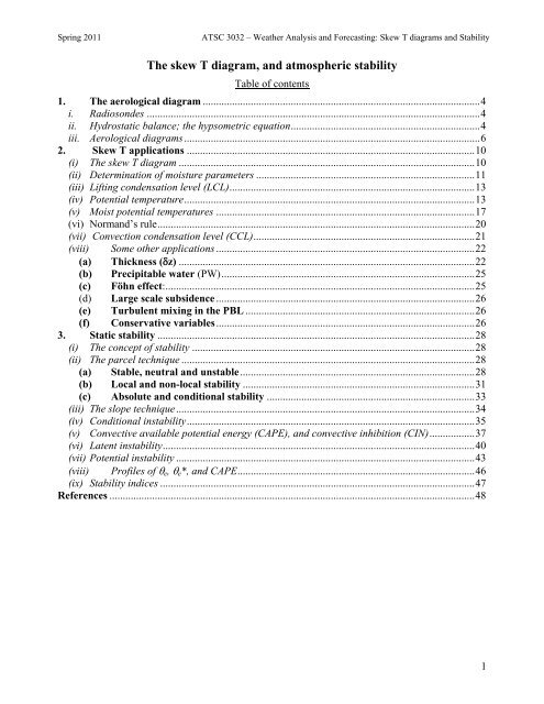 A Skew-T diagram, also known as a sounding, is plotted from data measured by weather balloons. National Weather Service observation sites usually release ... 11 Sept 2007 ... 1 The Skew-T, Log-P Diagram is the standard thermodynamic chart in use in most United States weather service offices today. This diagram is a ... A GUIDE TO THE SKEW-T / LOG-P DIAGRAM. Table of Contents. I. Skew-T – Log P Structure page 2. II. Levels a. Lifting Condensation Level (LCL). Isotherms- Lines of equal temperature. They run from the southwest to the northeast (thus the name skew) across the diagram and are SOLID. Increment are given ...