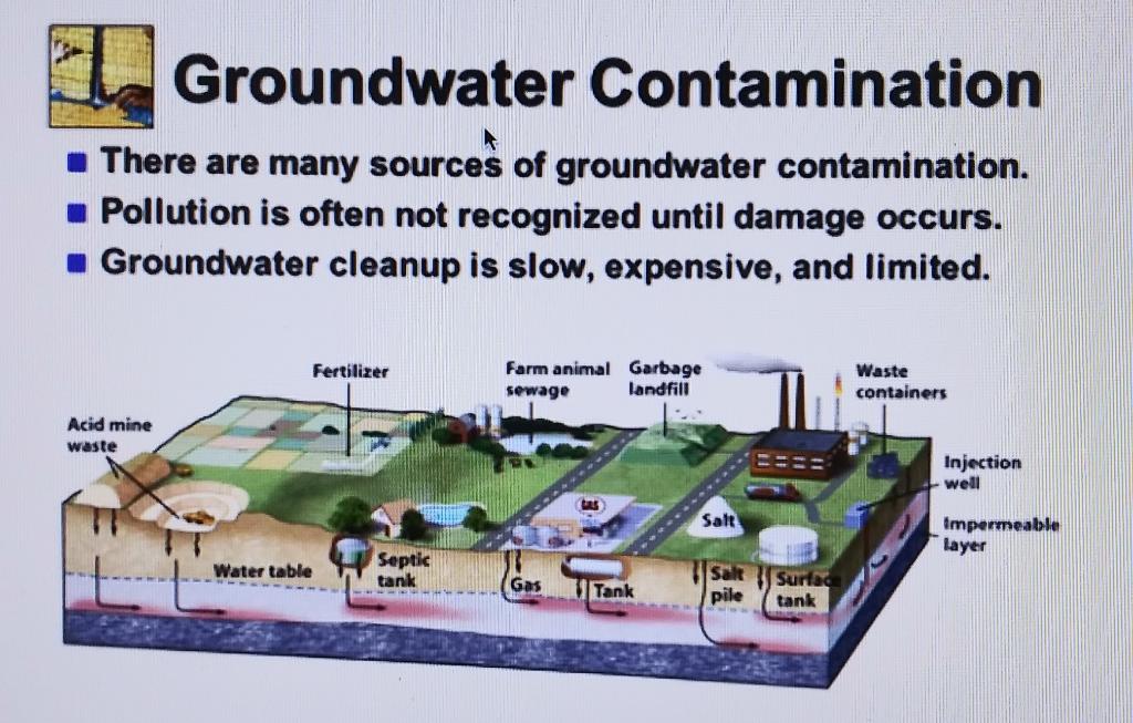 Transcribed Image Textfrom this Question. Chapter 11 (Water) Class Activity oncept Review: Sources of Groundwater Can you identify sources of groundwater? Part A Drag each label to the correct location on the diagram. Reset Help Groundwater aquifer Well Artesian well Confined aquifer Spring Water table Recharge zone Upper confiningconfining ... V = K * i. (where V is the velocity of the groundwater flow, K is the hydraulic conductivity, and i is the hydraulic gradient). We can apply this equation to the scenario in Figure 14.5. If we assume that the permeability is 0.00001 m/s we get: V = 0.00001 * 0.08 = 0.0000008 m/s. That is equivalent to 0.000048 m/min, 0.0029 m/hour or 0.069 m/day. groundwater, called a plume, can form (Diagram 3). A combination of moving groundwater and a continuous source of contamination can, therefore, pollute very large volumes and areas of groundwater. Some plumes at Superfund sites are several miles long. More than 88 percent of current Superfund sites have some groundwater contamination.