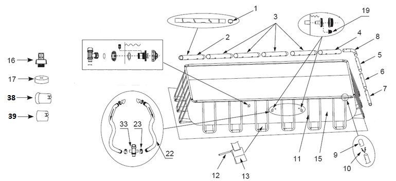 **Above Ground Pool Deck Ladder Parts HydroTools by Swimline. From $9.95 - $39.95 Quick View **1.5 HP Cleaner Cartridge Filter System Parts HydroTools by Swimline. From $9.95 - $299.95 Quick View **1/3 HP Integrated 12" Sand Filter System Parts ... Know Your Pool Structure. Above ground swimming pools vary slightly from model to model, but you will find that most manufacturers use the same general pool structure. The diagram above shows all the basic elements of these pools and below you will find brief descriptions of each part. Familiarize yourself with these parts should you ever need ...
