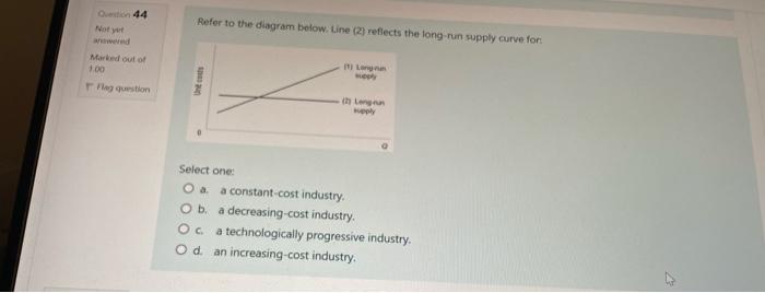 Refer to the diagrams, which pertain to a purely competitive firm producing output q and the industry ... Line (2) reflects the long-run supply curve for: Rating: 5 · 2 reviews
