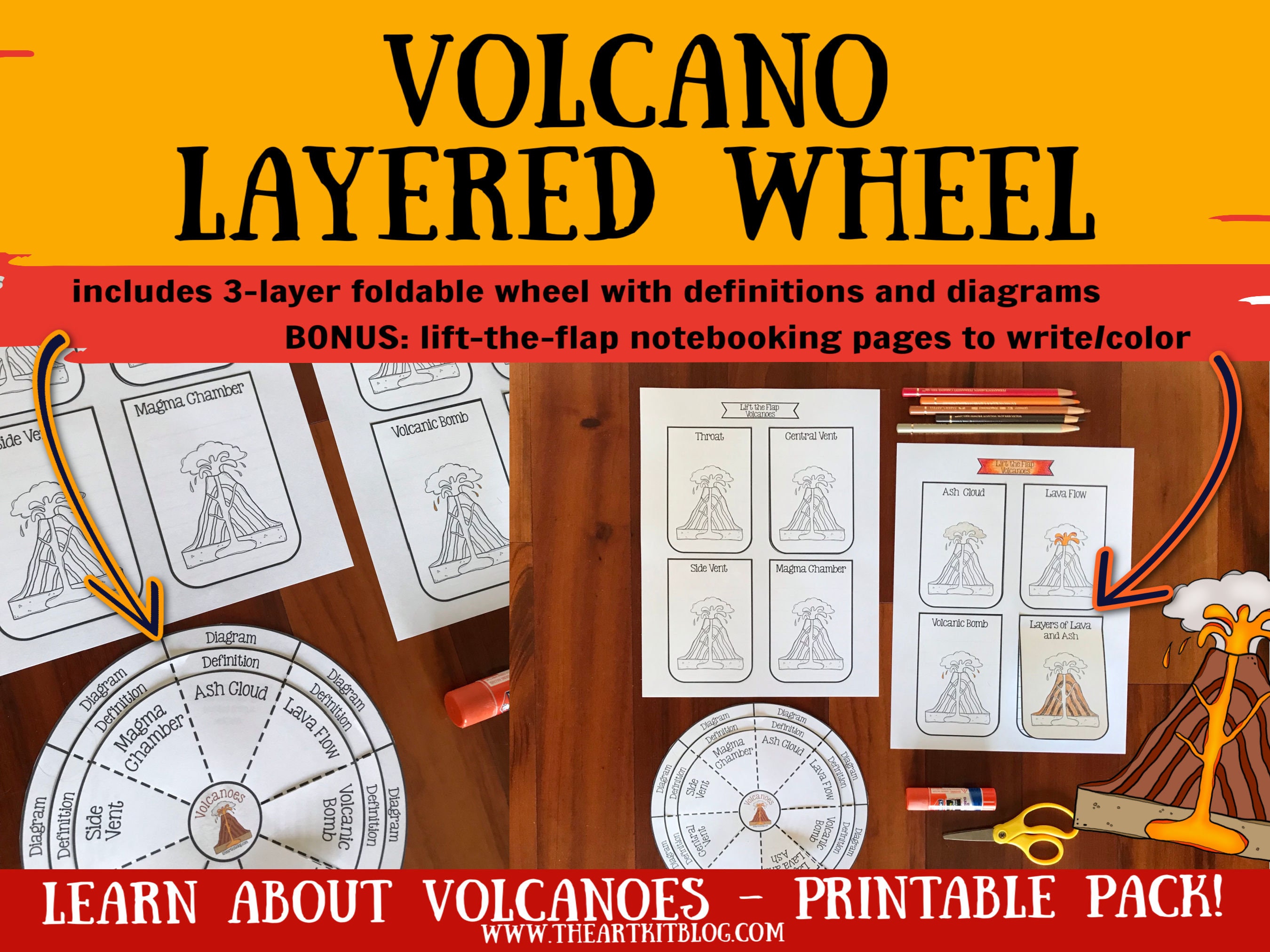 Volcano Science Study Guide, Foldable Wheel, Lift the Flap Printables for Kids, Interactive Notebooking, Diagram, Geology Lapbook, Rocks