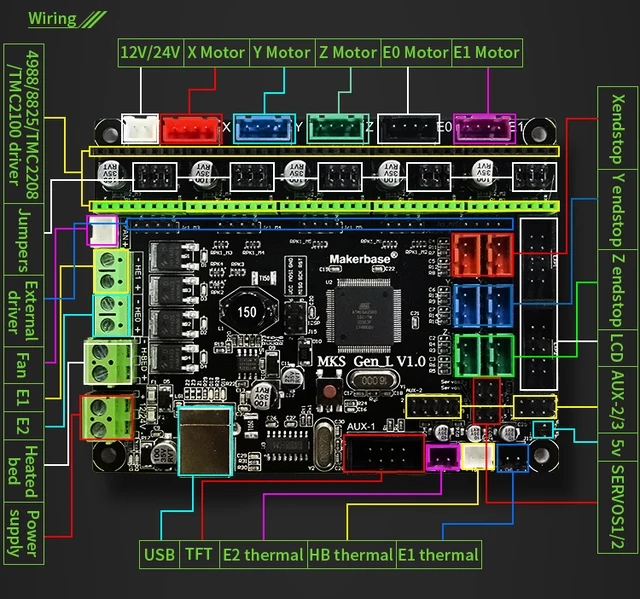 Tevo Tarantula Motherboard Mks Base V1.4 | 3D Printing - Tevo Tarantula Wiring Diagram Uploaded by Anna R. Higginbotham on Monday, February 11th, 2019 in category ; MKS Gen V1.4 is made by a Chinese manufacturer Makerbase. MKS are manufacturers of 3D Printer controller board also know as mainboards that run Marlin, Repetier