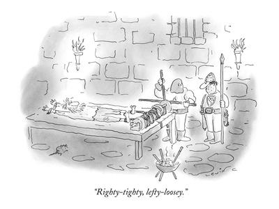 Righty-Tighty and Lefty-Loosey - On the House Righty-Tighty and Lefty-Loosey. By onthehouse on July 28, 2014. This means that turning most threaded things right, or clockwise, tightens them (righty-tighty) and turning them to the left, or counterclockwise, loosens them (lefty-loosey).
