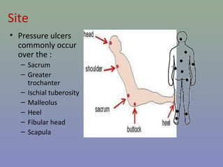 Skeleton presentation-Common sites of pressure ulcers. The ... Download scientific diagram | Skeleton presentation-Common sites of pressure ulcers. The most common sites are the sacrum, greater trochanters, ischial tuberosities, medical and lateral femoral ... PDF Anatomic Locations of Pressure Ulcers - Sage Products Pressure Ulcers Reference: Stephanie Amlung, PhD, RN; Wendy L. Miller, and Linda M Bosley, BSM "The 1999 National Pressure Ulcer Prevalence Survey: A Benchmarking Approach," Advances in Skin & Wound Care; 14(6):297-301, Nov-Dec 2001. Pressure Injury Stages - National Pressure Ulcer Advisory ... The National Pressure Injury Advisory Panel provides interprofessional leadership to improve patient outcomes in pressure injury prevention and management through education, public policy and research. ... J. M., Goldberg, M., McNichol, L., Moore, L., & Sieggreen, M. (2016). Revised National Pressure Ulcer Advisory Panel Pressure Injury Staging ... PDF Staff Educational Training Program and Toolkit of developing pressure injuries and residents with exiting PIs. Research shows that a resident at risk for skin breakdown can develop a PI within hours of onset of pressure, and interventions should be implemented promptly to prevent PIs. Federal regulation lists examples of resident risk factors for pressure injuries/ulcers 1: